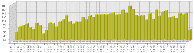 (ბოლო 1 წელი, კვირის ჯამური მაჩვენებლის მიხედვით)