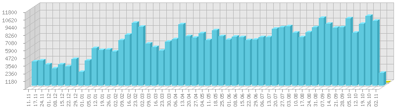 სტატისტიკა დღეების მიხედვით:     ან ბოლო დღის სტატისტიკა