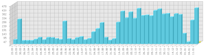 (ბოლო 1 წელი, კვირის ჯამური მაჩვენებლის მიხედვით)
