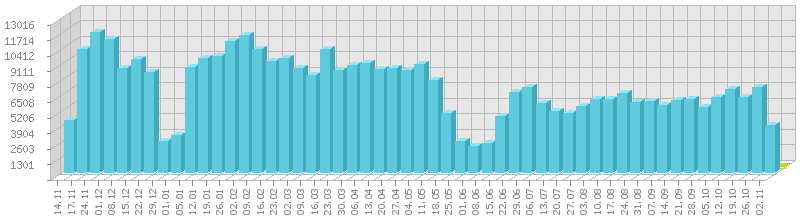 სტატისტიკა დღეების მიხედვით:     ან ბოლო დღის სტატისტიკა