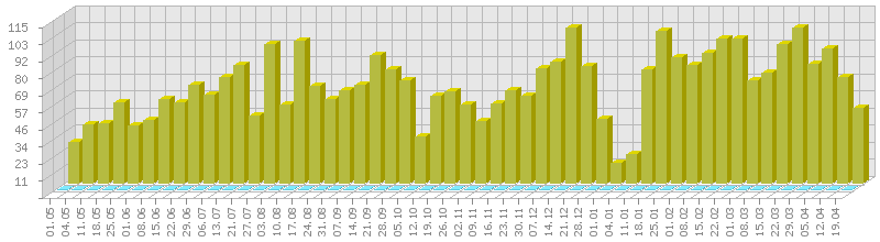 (ბოლო 1 წელი, კვირის ჯამური მაჩვენებლის მიხედვით)