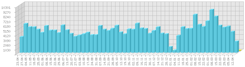 სტატისტიკა დღეების მიხედვით:     ან ბოლო დღის სტატისტიკა