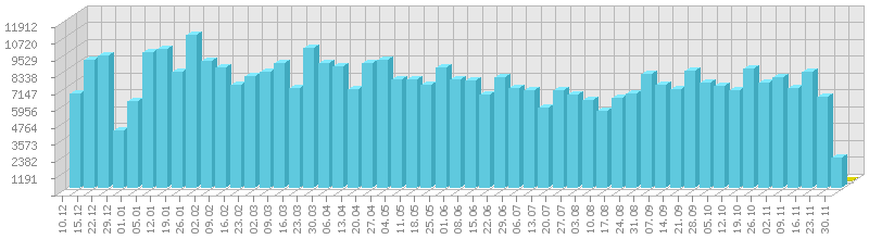 სტატისტიკა დღეების მიხედვით:     ან ბოლო დღის სტატისტიკა