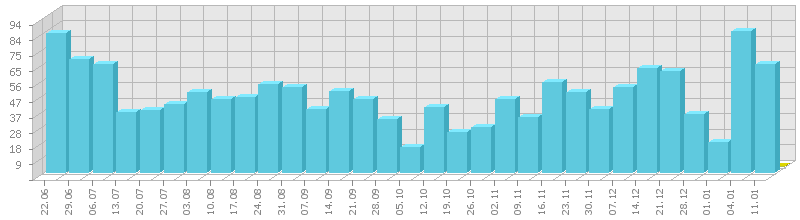 (ბოლო 1 წელი, კვირის ჯამური მაჩვენებლის მიხედვით)