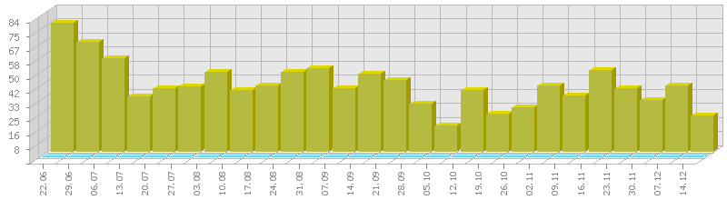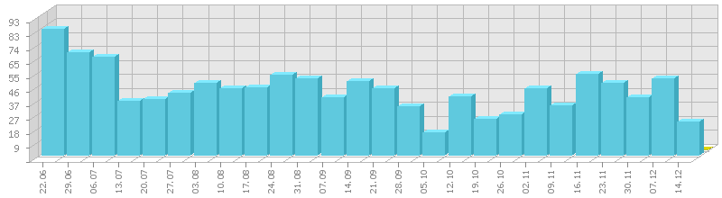(ბოლო 1 წელი, კვირის ჯამური მაჩვენებლის მიხედვით)
