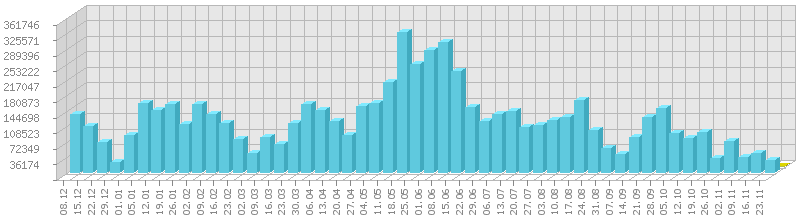 (ბოლო 1 წელი, კვირის ჯამური მაჩვენებლის მიხედვით)
