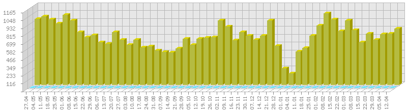 (ბოლო 1 წელი, კვირის ჯამური მაჩვენებლის მიხედვით)