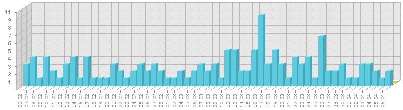 სტატისტიკა დღეების მიხედვით:     ან ბოლო დღის სტატისტიკა