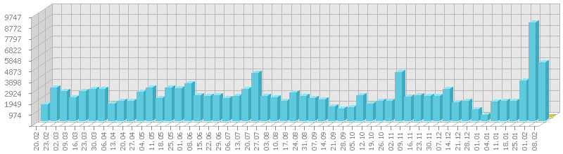 სტატისტიკა დღეების მიხედვით:     ან ბოლო დღის სტატისტიკა