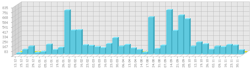 სტატისტიკა დღეების მიხედვით:     ან ბოლო დღის სტატისტიკა