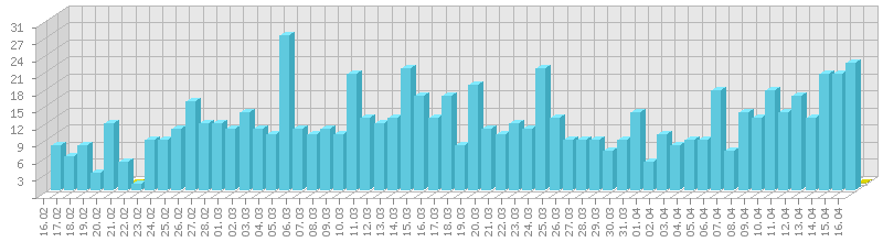სტატისტიკა დღეების მიხედვით:     ან ბოლო დღის სტატისტიკა