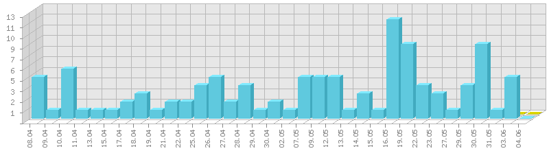 სტატისტიკა დღეების მიხედვით:     ან ბოლო დღის სტატისტიკა