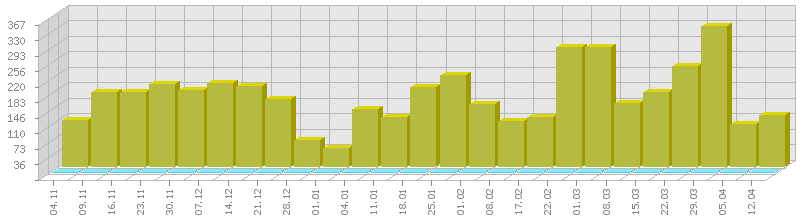 (ბოლო 1 წელი, კვირის ჯამური მაჩვენებლის მიხედვით)