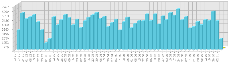 სტატისტიკა დღეების მიხედვით:     ან ბოლო დღის სტატისტიკა