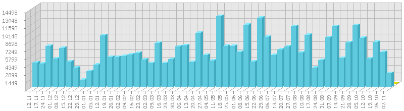 სტატისტიკა დღეების მიხედვით:     ან ბოლო დღის სტატისტიკა