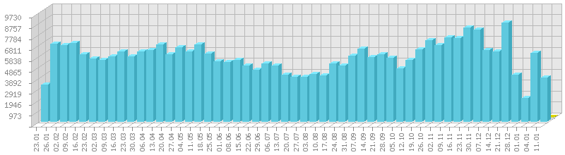სტატისტიკა დღეების მიხედვით:     ან ბოლო დღის სტატისტიკა