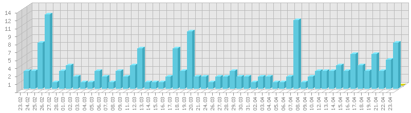 სტატისტიკა დღეების მიხედვით:     ან ბოლო დღის სტატისტიკა