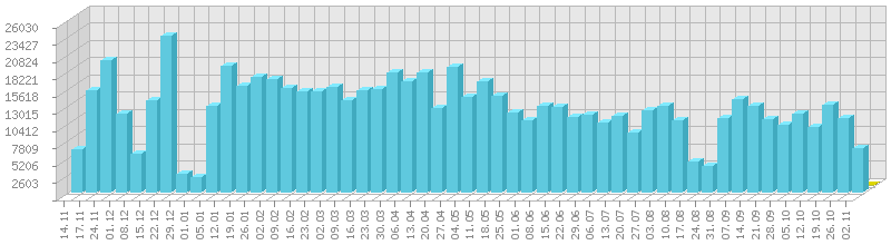 სტატისტიკა დღეების მიხედვით:     ან ბოლო დღის სტატისტიკა