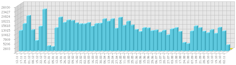 სტატისტიკა დღეების მიხედვით:     ან ბოლო დღის სტატისტიკა