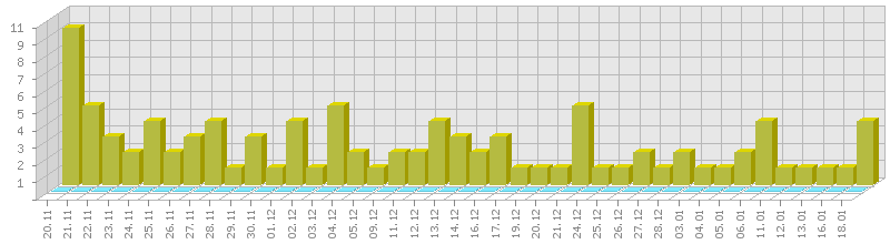 სტატისტიკა დღეების მიხედვით:     ან ბოლო დღის სტატისტიკა