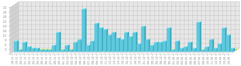 სტატისტიკა დღეების მიხედვით:     ან ბოლო დღის სტატისტიკა