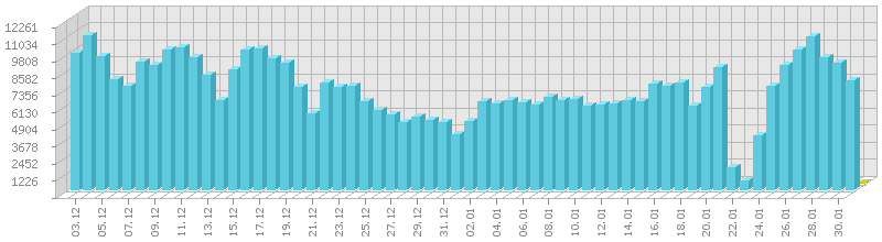 სტატისტიკა დღეების მიხედვით:     ან ბოლო დღის სტატისტიკა