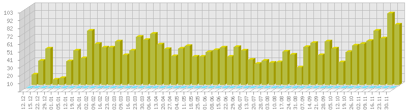 (ბოლო 1 წელი, კვირის ჯამური მაჩვენებლის მიხედვით)