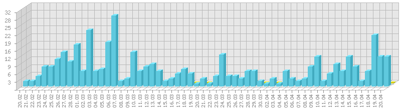 სტატისტიკა დღეების მიხედვით:     ან ბოლო დღის სტატისტიკა