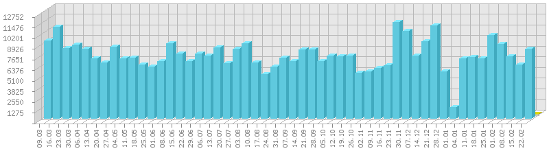 სტატისტიკა დღეების მიხედვით:     ან ბოლო დღის სტატისტიკა