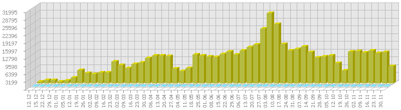 სტატისტიკა დღეების მიხედვით:     ან ბოლო დღის სტატისტიკა