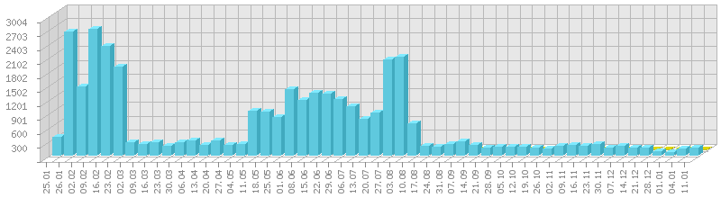 სტატისტიკა დღეების მიხედვით:     ან ბოლო დღის სტატისტიკა