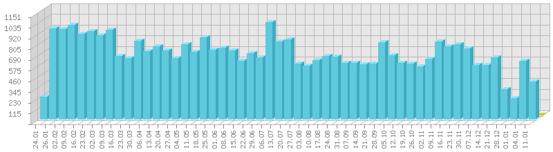 (ბოლო 1 წელი, კვირის ჯამური მაჩვენებლის მიხედვით)