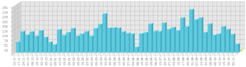 (ბოლო 1 წელი, კვირის ჯამური მაჩვენებლის მიხედვით)