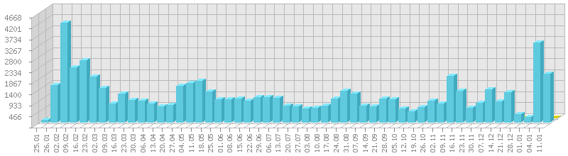სტატისტიკა დღეების მიხედვით:     ან ბოლო დღის სტატისტიკა