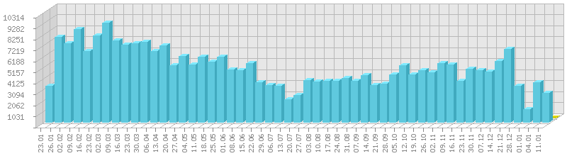 სტატისტიკა დღეების მიხედვით:     ან ბოლო დღის სტატისტიკა