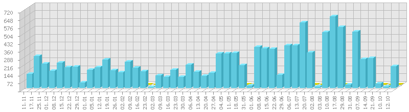 სტატისტიკა დღეების მიხედვით:     ან ბოლო დღის სტატისტიკა