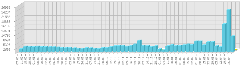 სტატისტიკა დღეების მიხედვით:     ან ბოლო დღის სტატისტიკა