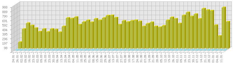 (ბოლო 1 წელი, კვირის ჯამური მაჩვენებლის მიხედვით)