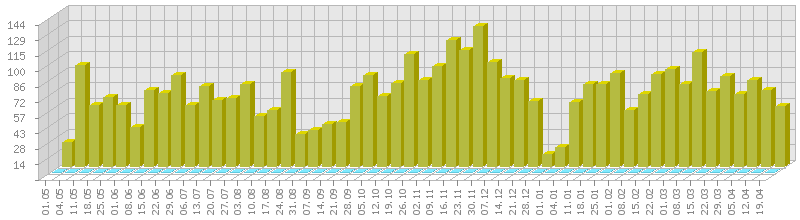 (ბოლო 1 წელი, კვირის ჯამური მაჩვენებლის მიხედვით)