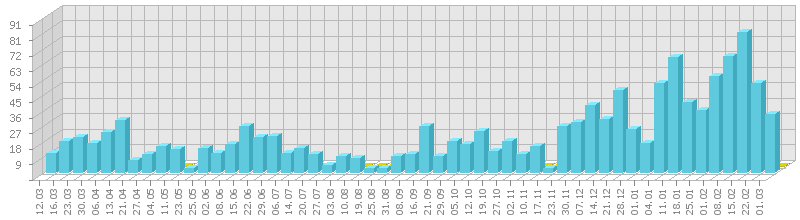 (ბოლო 1 წელი, კვირის ჯამური მაჩვენებლის მიხედვით)