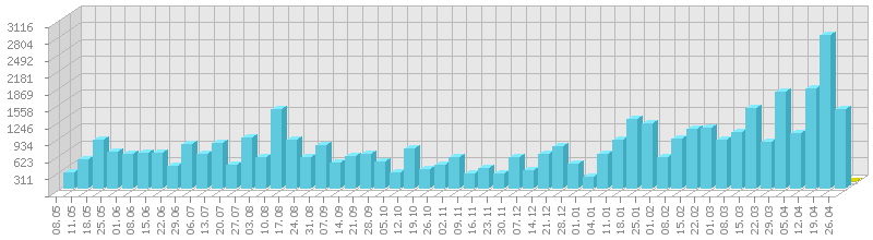 სტატისტიკა დღეების მიხედვით:     ან ბოლო დღის სტატისტიკა