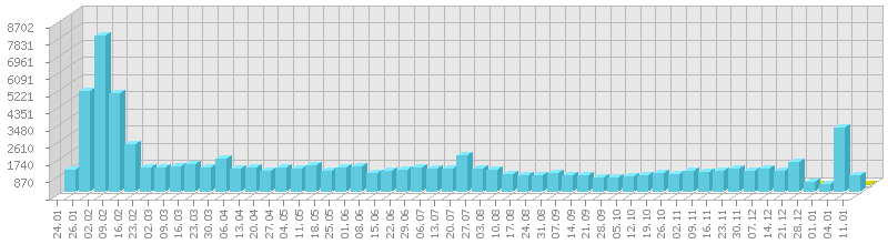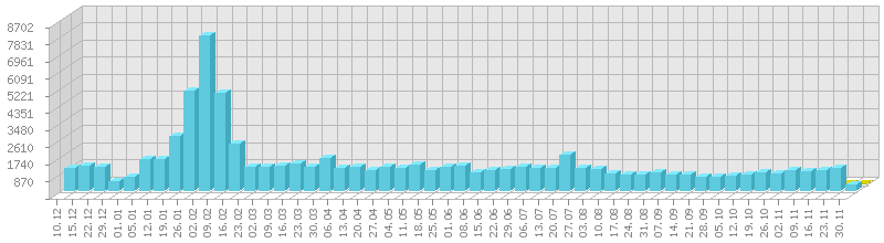 სტატისტიკა დღეების მიხედვით:     ან ბოლო დღის სტატისტიკა