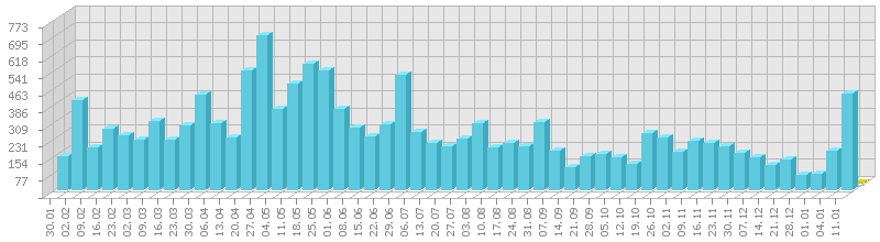 სტატისტიკა დღეების მიხედვით:     ან ბოლო დღის სტატისტიკა