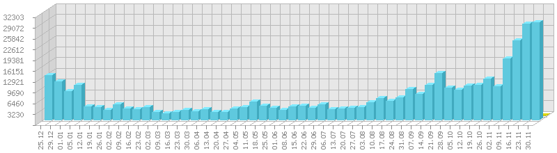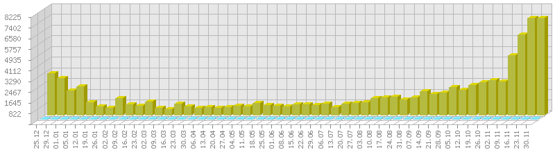 სტატისტიკა დღეების მიხედვით:     ან ბოლო დღის სტატისტიკა