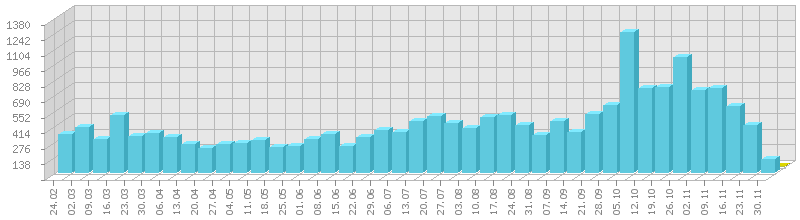 სტატისტიკა დღეების მიხედვით:     ან ბოლო დღის სტატისტიკა