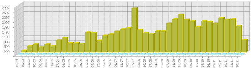 სტატისტიკა დღეების მიხედვით:     ან ბოლო დღის სტატისტიკა