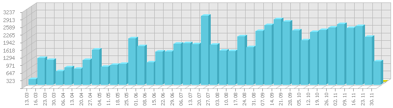 სტატისტიკა დღეების მიხედვით:     ან ბოლო დღის სტატისტიკა
