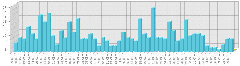 სტატისტიკა დღეების მიხედვით:     ან ბოლო დღის სტატისტიკა