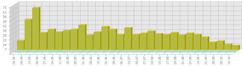 (ბოლო 1 წელი, კვირის ჯამური მაჩვენებლის მიხედვით)