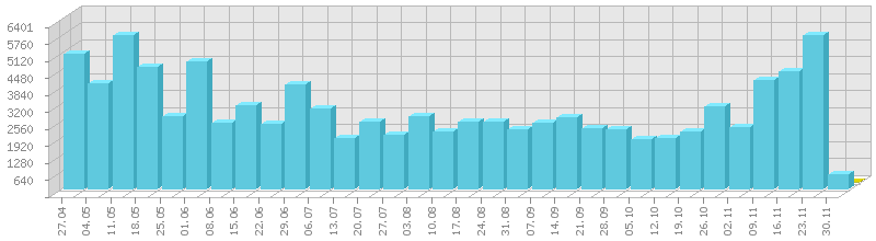 სტატისტიკა დღეების მიხედვით:     ან ბოლო დღის სტატისტიკა
